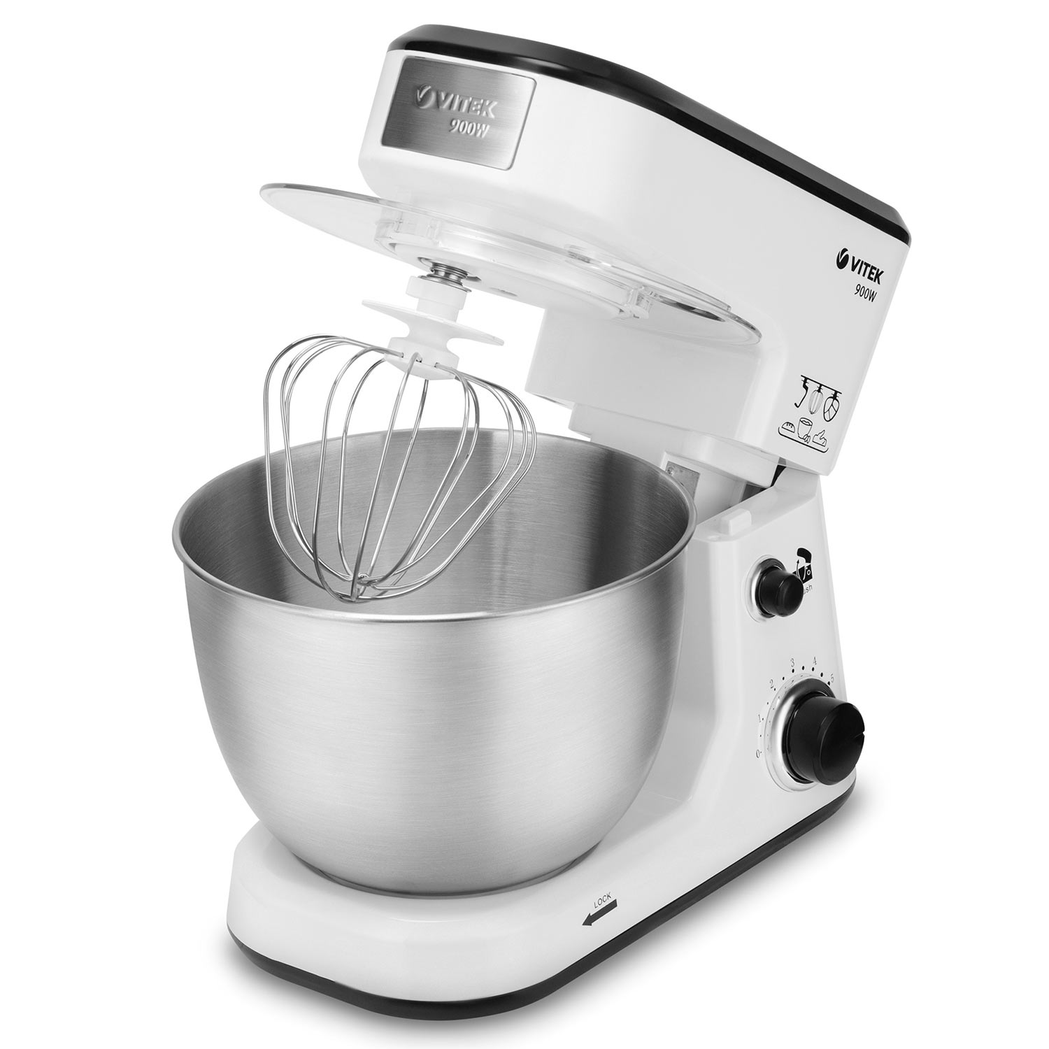 Кухонная машина VT-1438 VITEK 900Вт, планетар.вращ., белый/черный