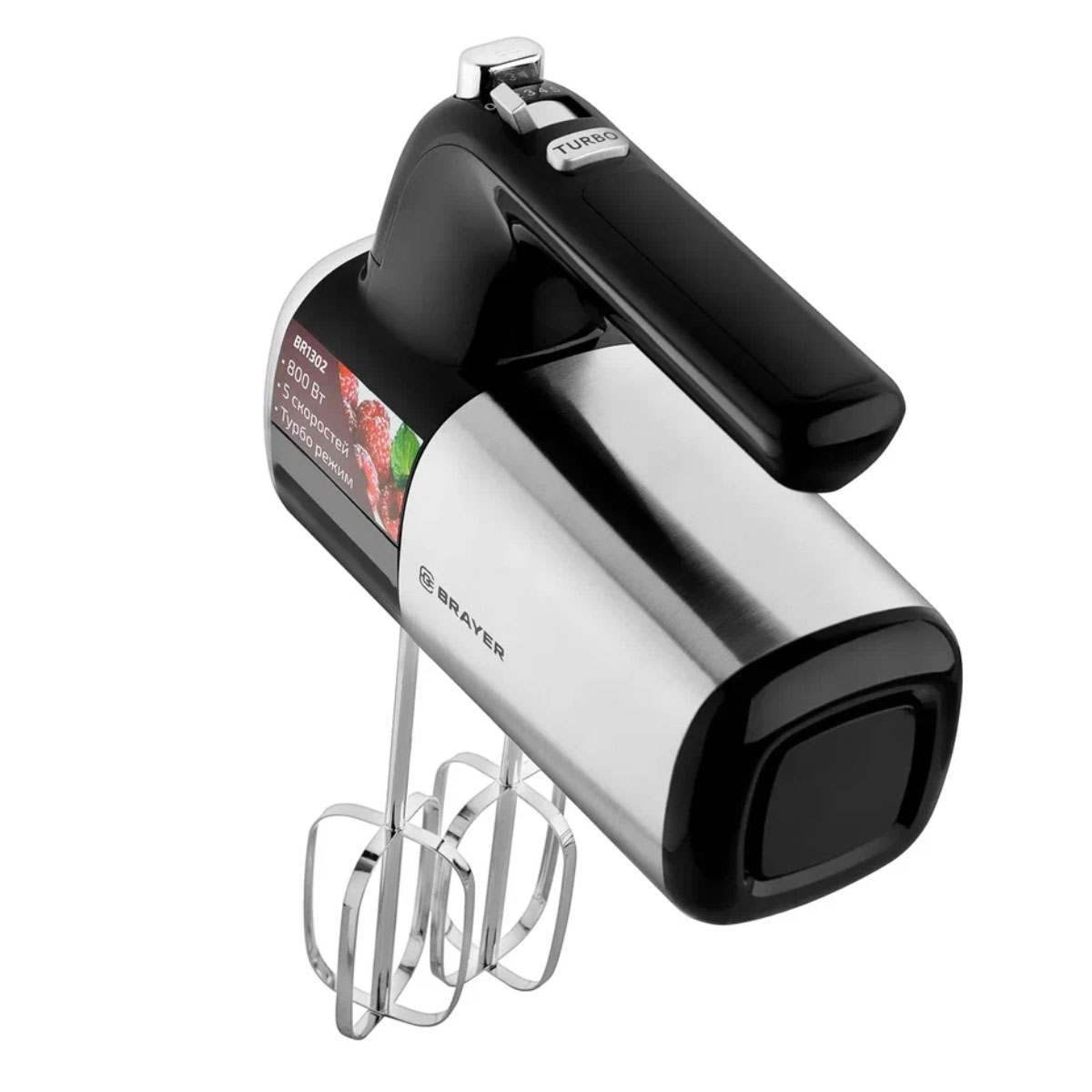 Миксер BR1302 800Вт, 5 скоростей, турбо,насад. венчики, насад. для взбивания BRAYER