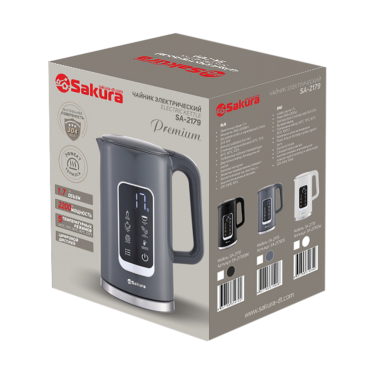 Эл.чайник SA-2179DBK 1,7л Premium сенс. дисплей черный