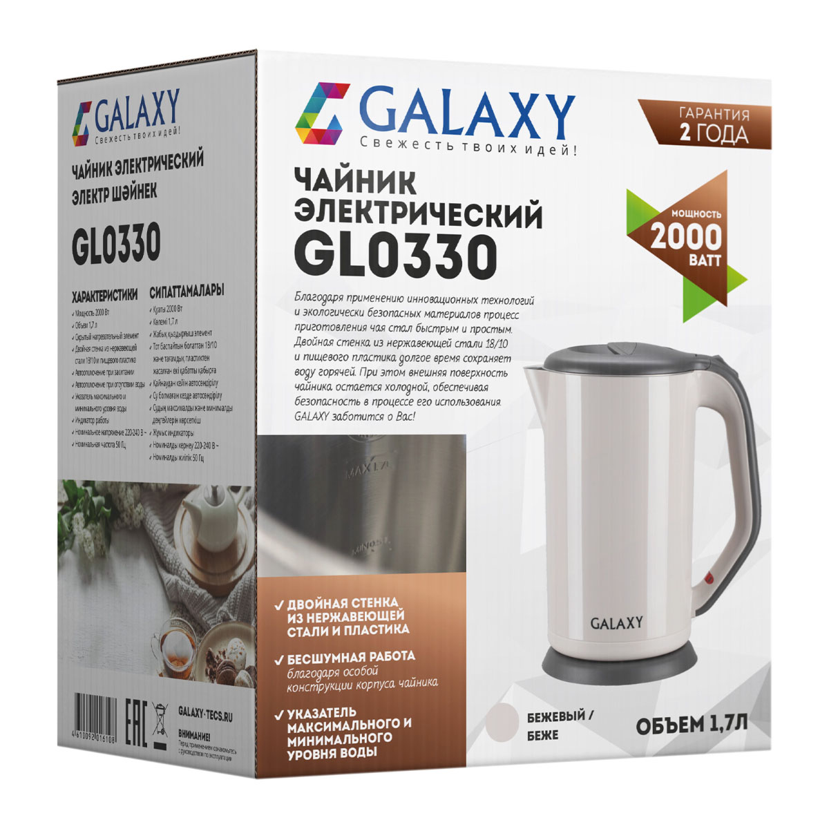 Эл.чайник GL0330 Galaxy 2000Вт, 1,7л, бежевый 6
