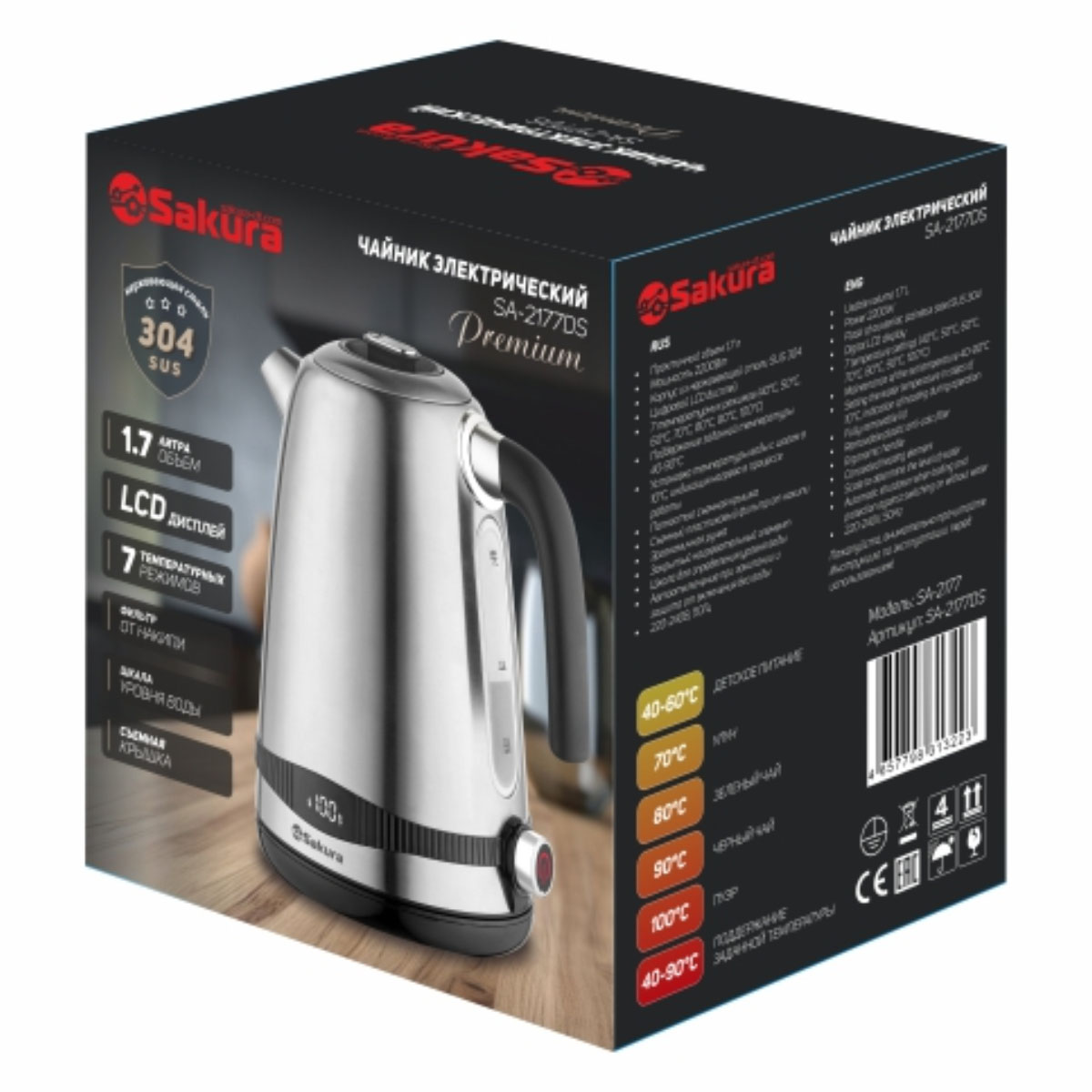 Эл.чайник SA-2177DS 1,7л Premium нерж LCD дисплей