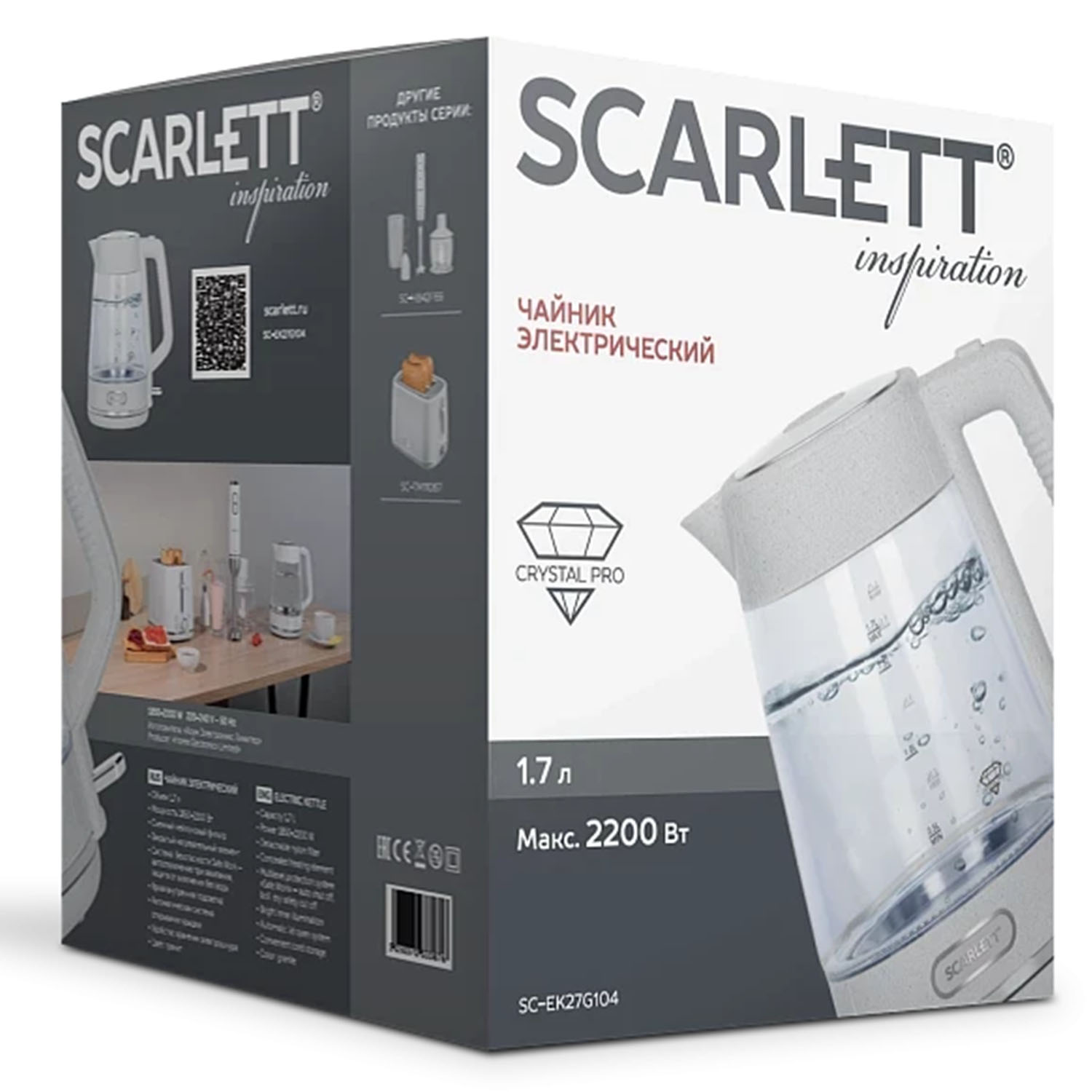 -Эл.чайник SC-EK27G104 GRANITE 2200Вт, белый