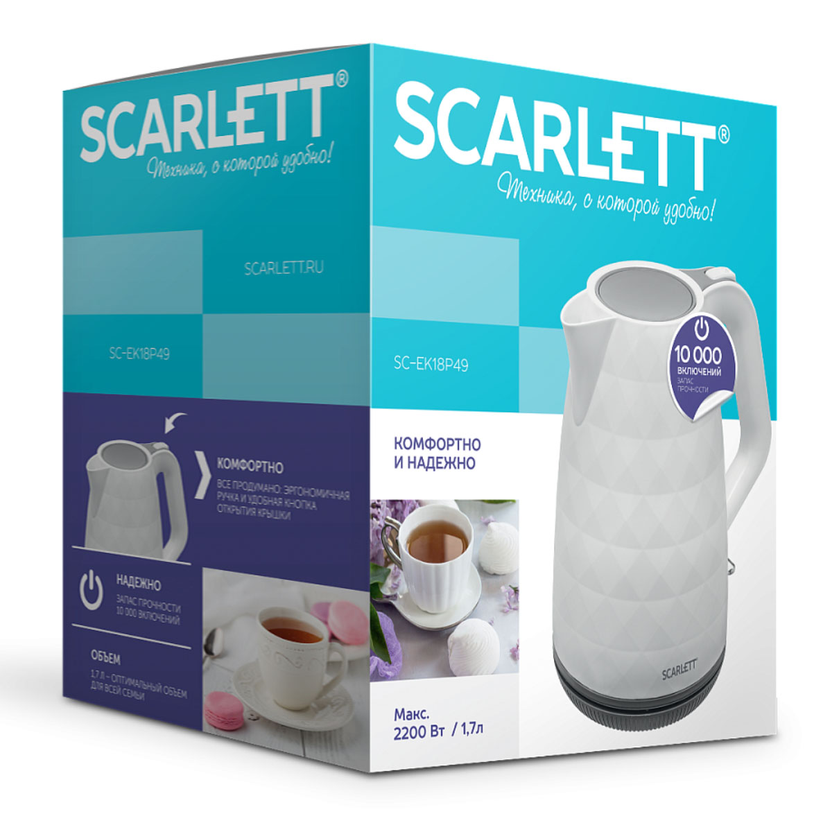 Чайник эл. Scarlett SC-EK18P49, 1,7л, 2200Вт, белый с серым
