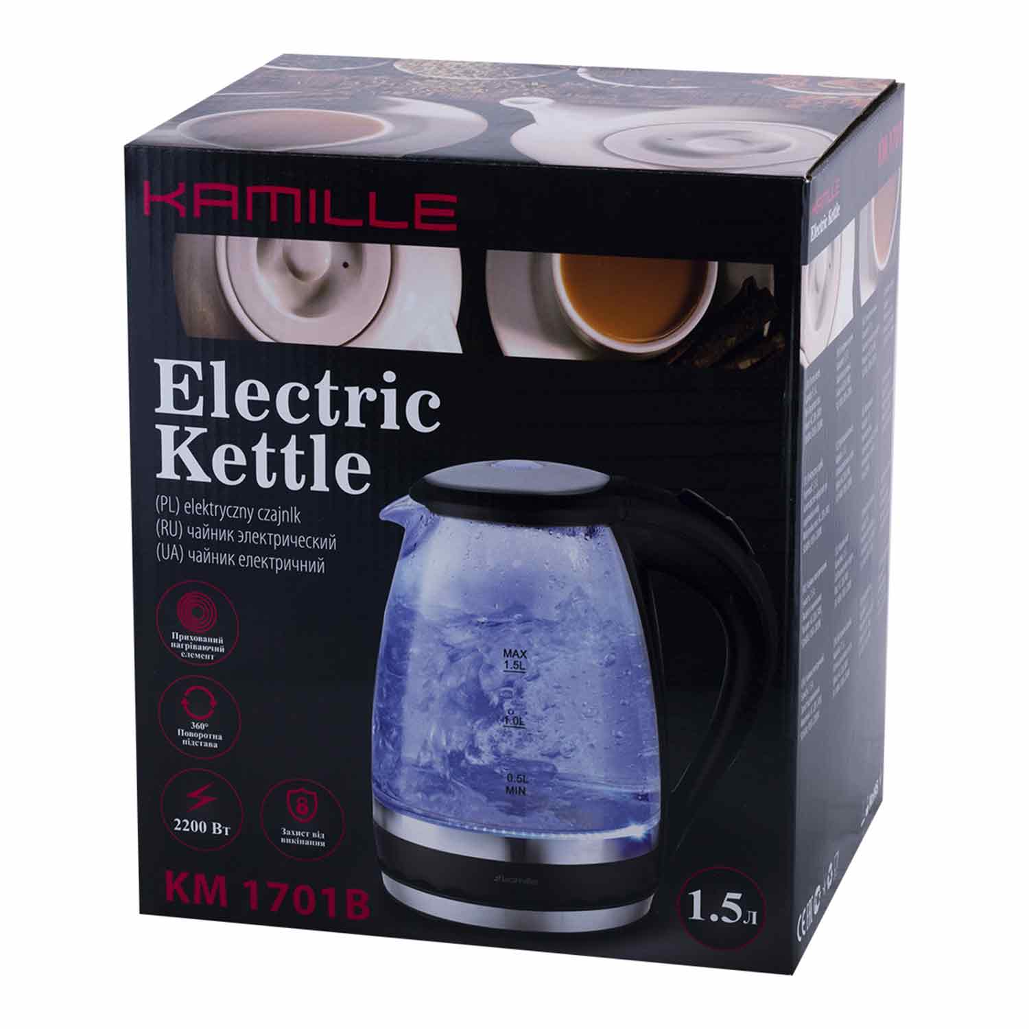 Чайник эл. 1,5л с синей LED подсветкой и стальными декоративными вставками 1701В