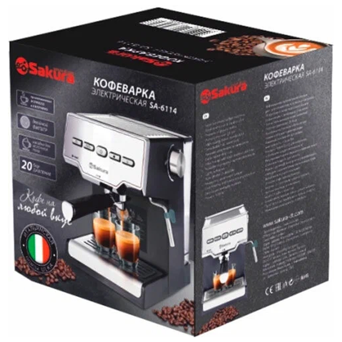 -Эл.кофеварка SA-6114 рожк 1,6л 20бар 1000Вт