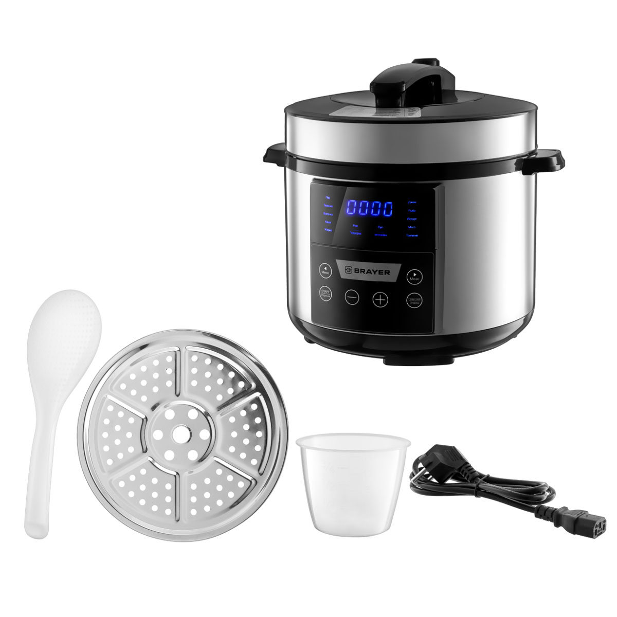 Мультиварка-скороварка эл. BRAYER BR2400, 900Вт, 5л, 12 программ, сенсор. управление, Led, таймер 24ч.