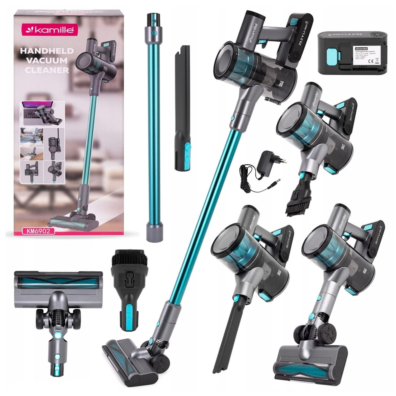 -Пылесос беспроводной вертикальный 6902 аккум 2в1 135Вт черно-зеленый