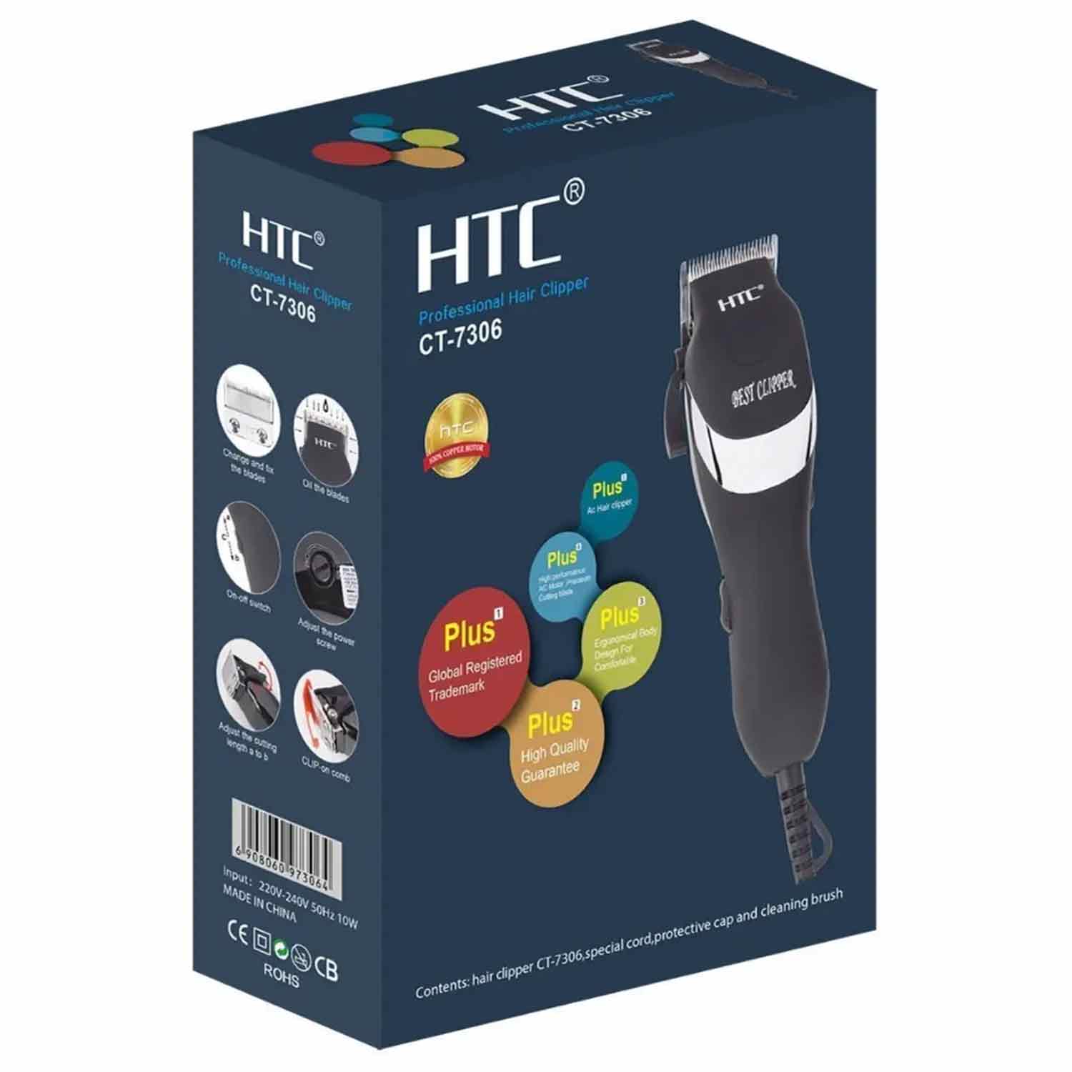 Машинка для стрижки волос HTC CT-7306 10Вт, 4 шт, от сети, черный