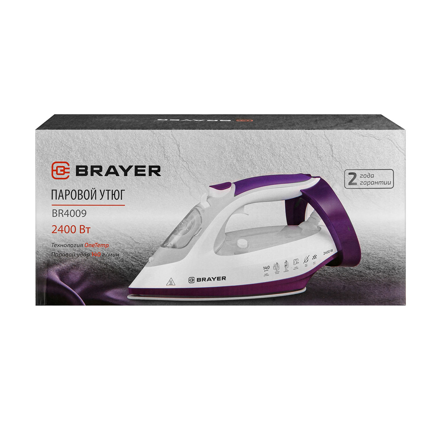 -Утюг BR4009 2400Вт, керамич, пар 140 г/мин, антикапля, BRAYER
