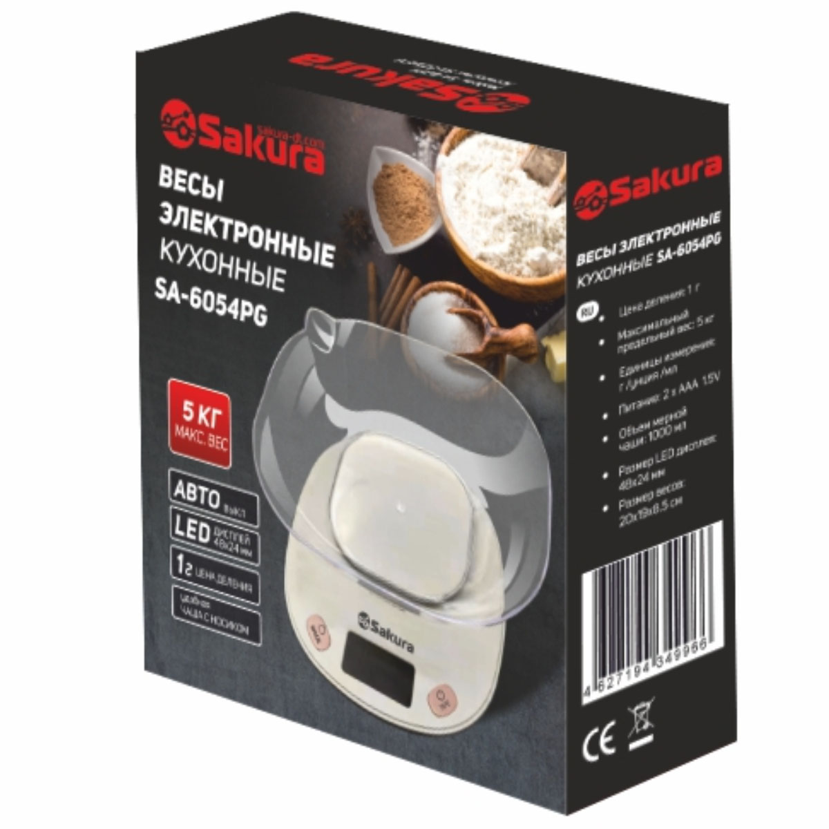 Весы кухонные SA-6054PG 5кг элек роз/сер