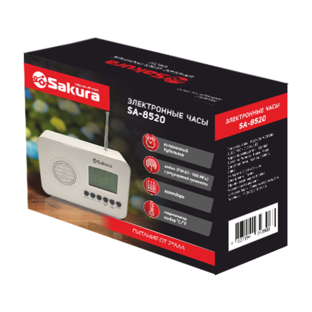 Часы настольные SAKURA SA-8520, электронные, будильник, радио