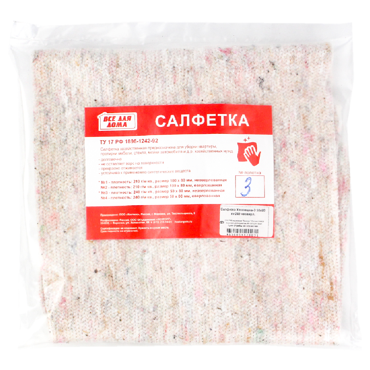 Купить Салфетка Хозяюшка-3 50x80 пл240 неоверл., а также приобрести другие хозяйственные товары для дома или дачи в нашем интернет-магазине vdd36.ru по низким ценам и вы сможете с удобной доставкой или бесплатным самовывозом из любого розничного магазина «Всё для дома» в Воронеже, Новой Усмани, Семилуках