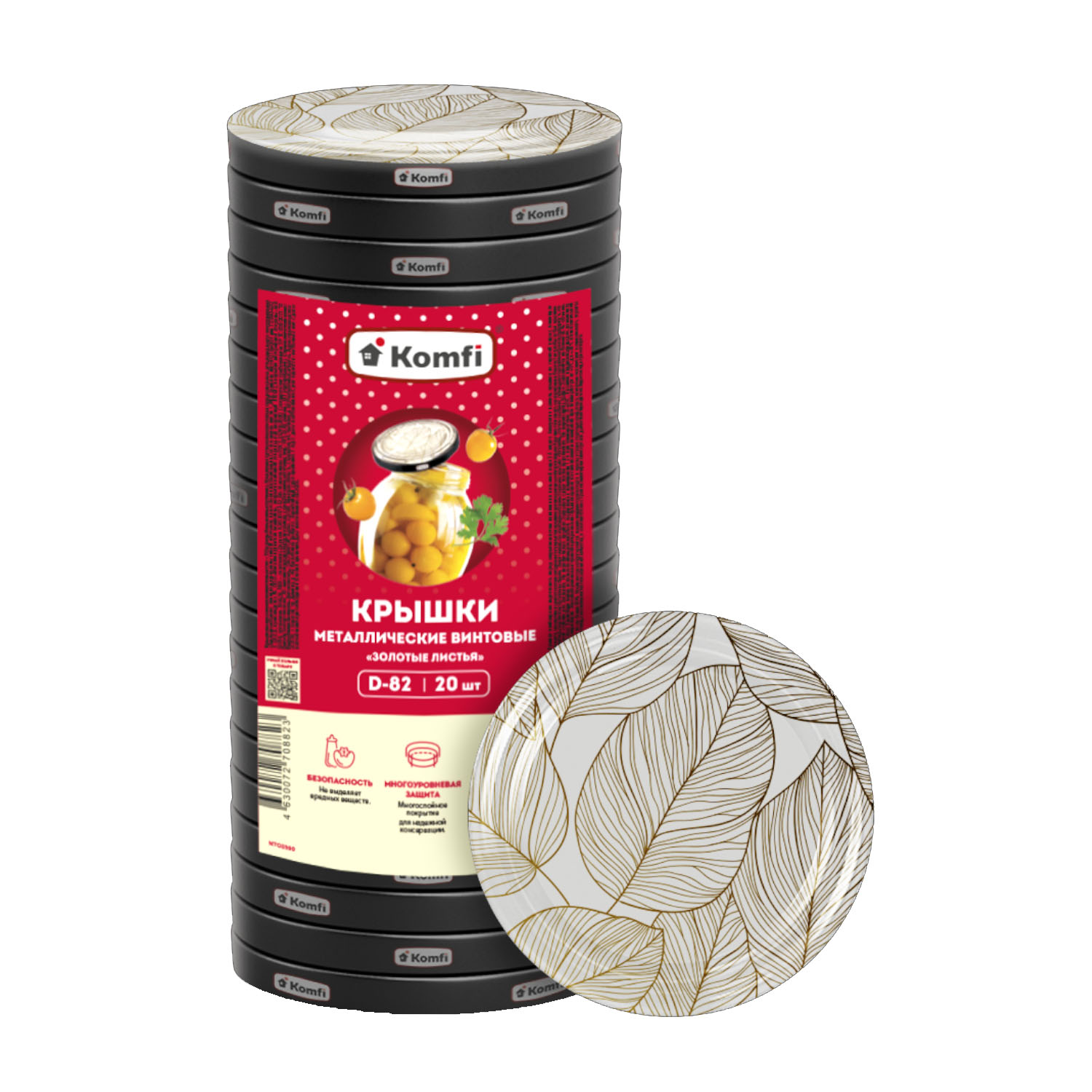 Крышка винт.D=82мм, NTO2390 в упак.20шт "Золотые листья" Komfi/800/20