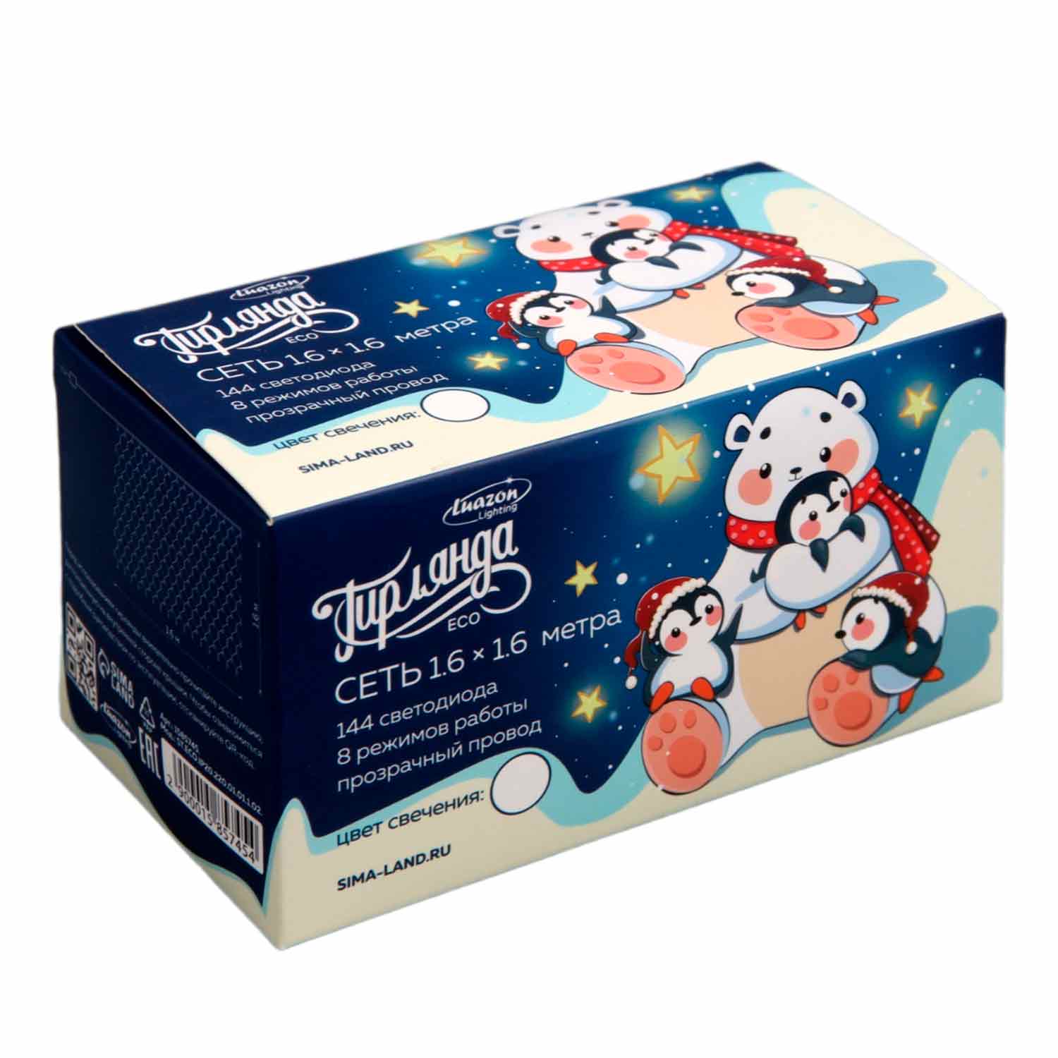 СЕТЬ ECO. IP20, Ш:1.6 м, В:1.6 м, Н.С. LED-144-220V, 8 режимов, БЕЛЫЙ 1585745