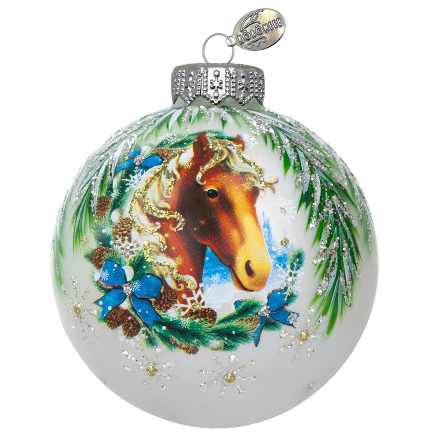 -Шар КУ-80-254011 "Лошадка снежная", 80мм, п/у