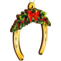 Новогодняя елочная подвеска из дерева НУ-2800 двухслойная, Подкова с веточкой 9см