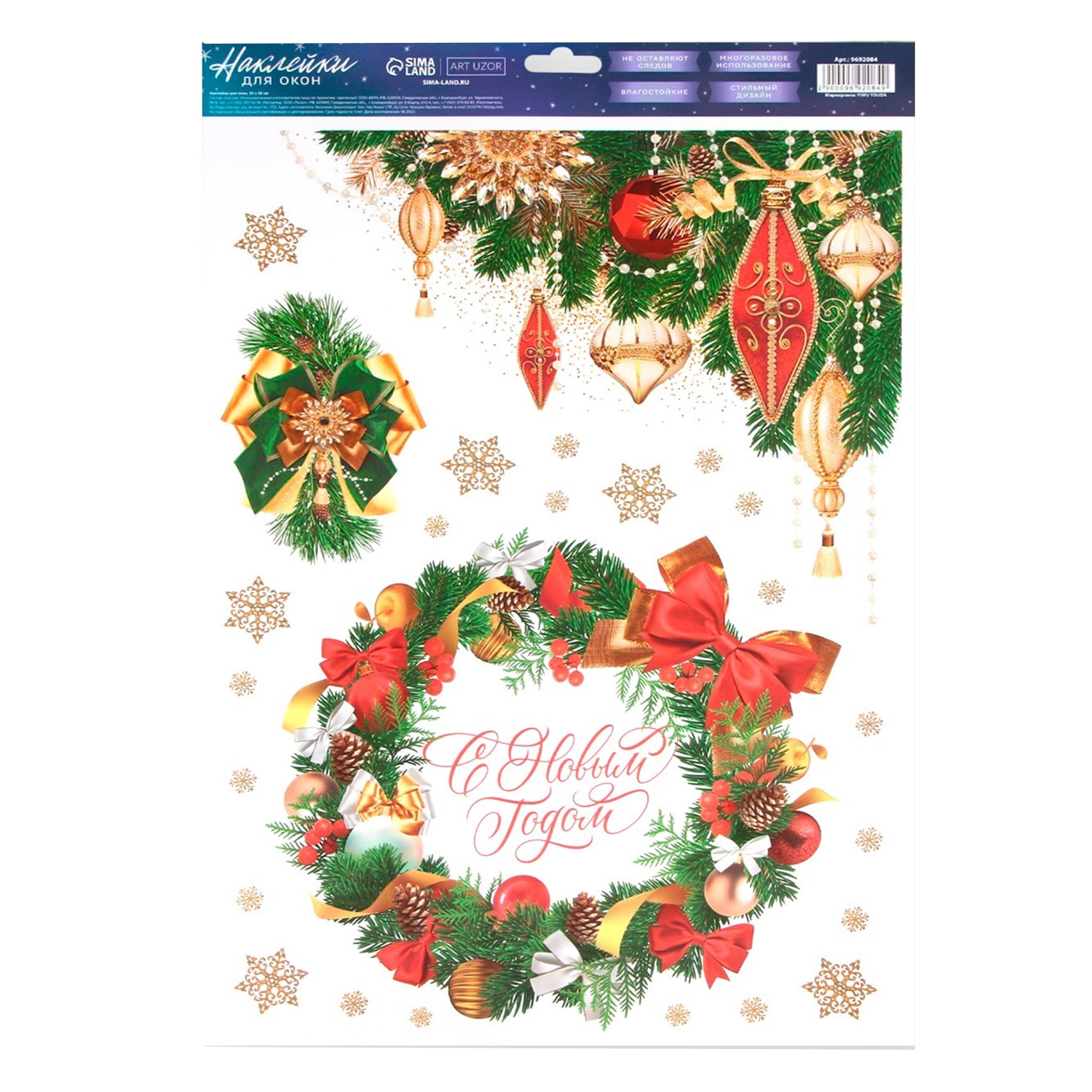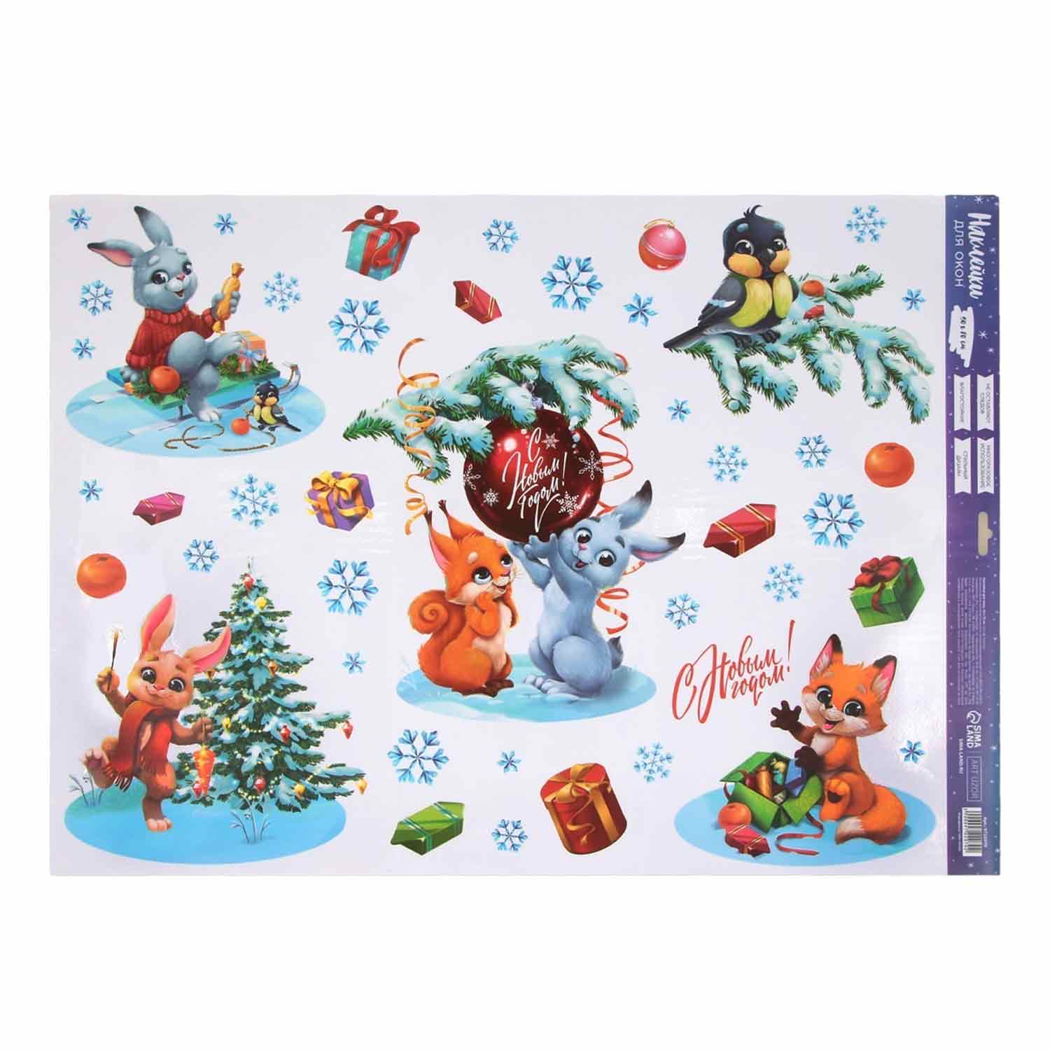 Наклейка для окон «С Новым годом» 9692084, многоразовая, 33 × 50 см
