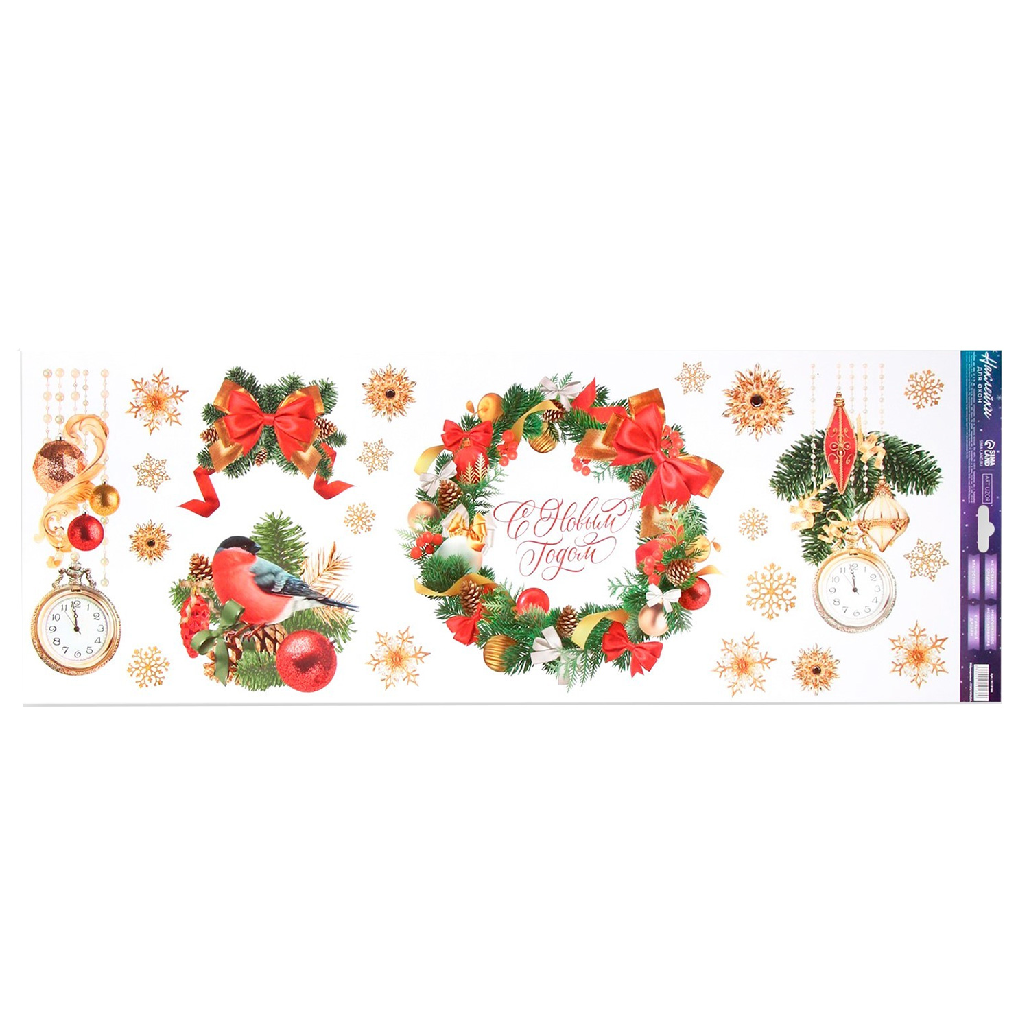 Виниловые наклейки на окна «Новогодний венок» 9519166, многоразовые, 70 × 25 см