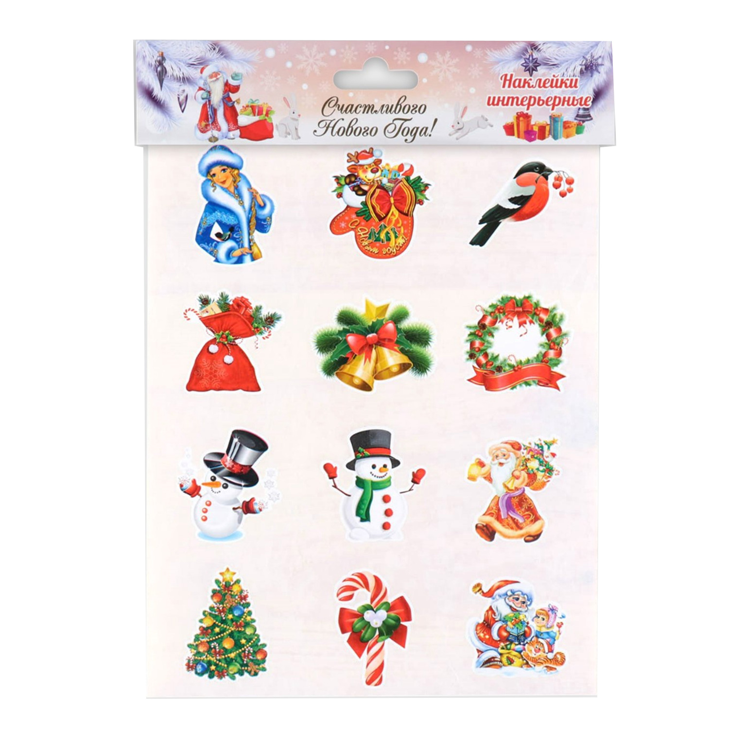 Набор наклеек 3816914 "Новогодний" 12 шт новогодних в наборе, 9 х 9 см
