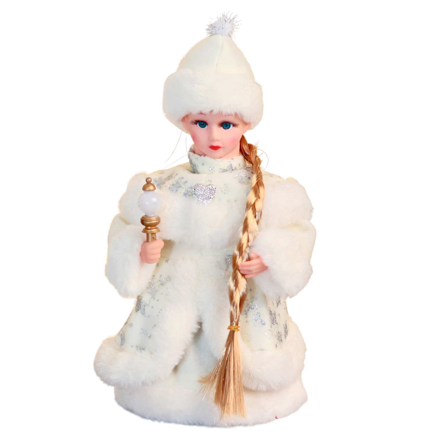 -Снегурочка "В белой шубке с сердечком" двигается, 16х30 см 6939446