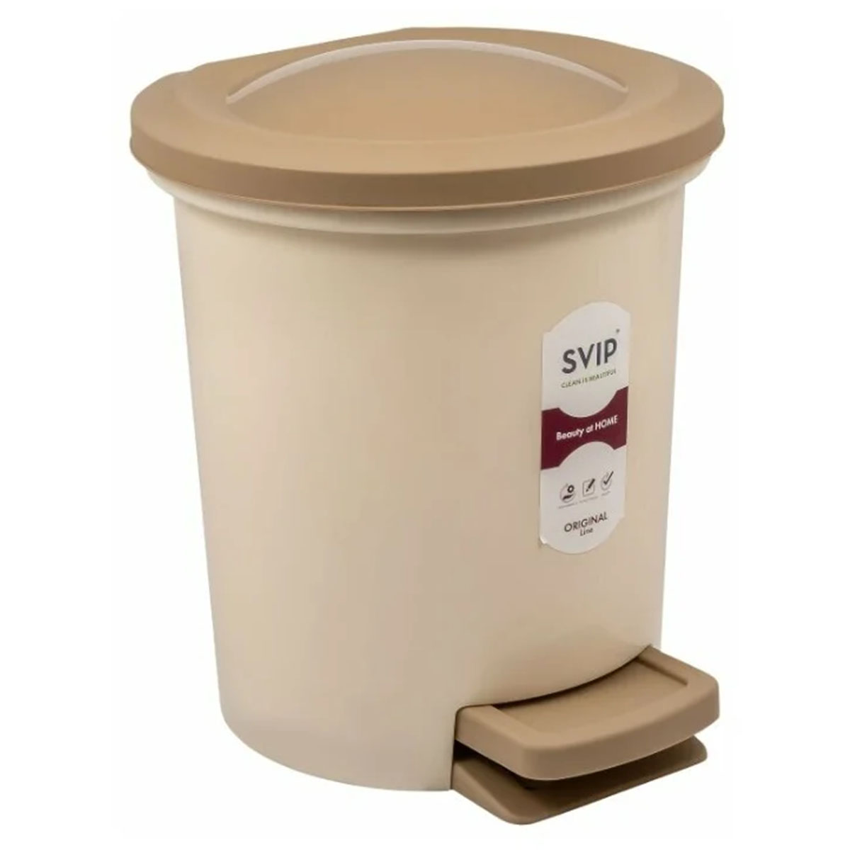 Контейнер для мусора п/м SVIP "Vogue" SV4046, 6л., круглый, с крышкой, внутреннее ведро-вставка, скрытые ручки, педаль, кофейный