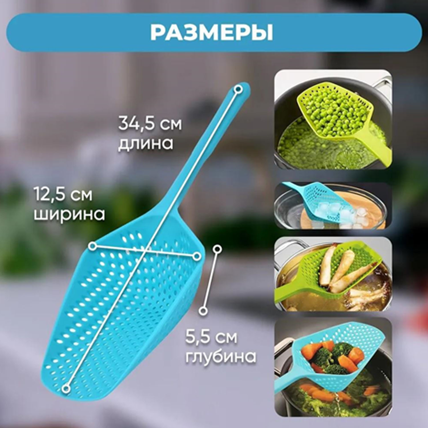 Лопатка (шумовка) пластик голубая