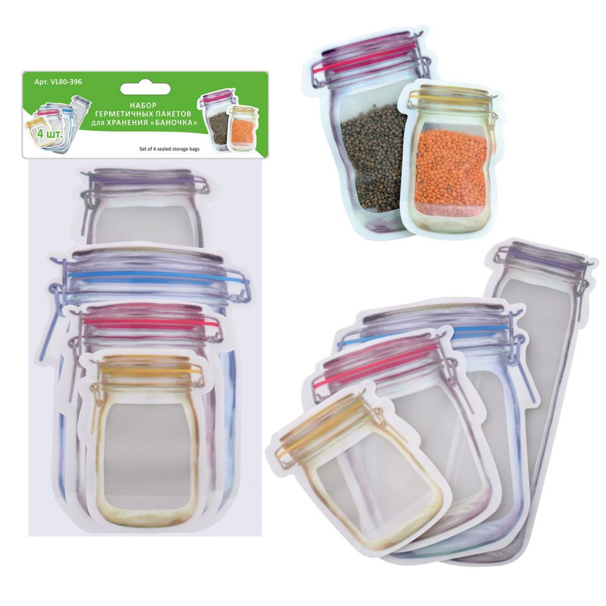 Наб.пакетов для хранения VL80-396 Баночка 4шт. герметичные