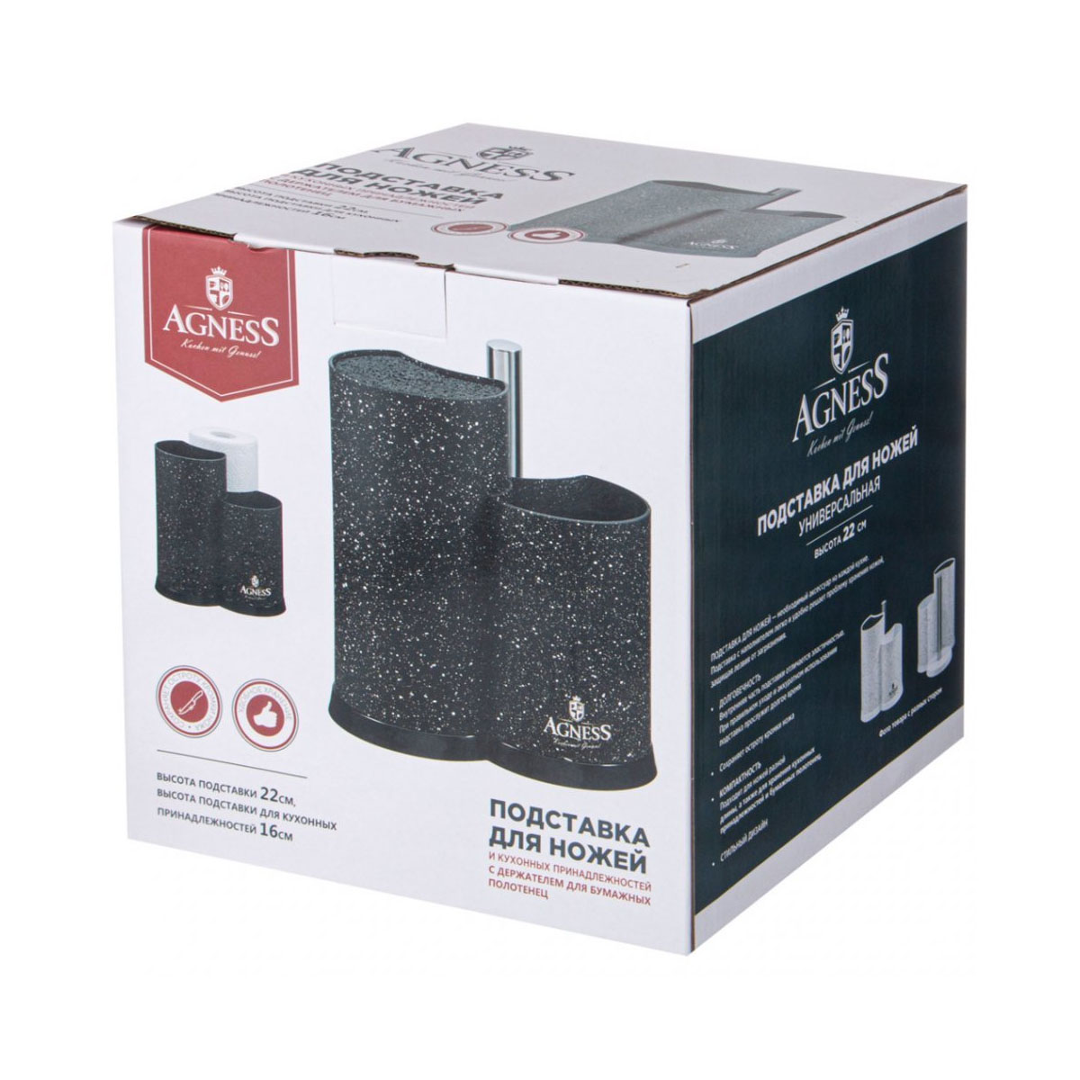 Подставка для ножей  Agness 911-752, с держат. д/полотенец  h-25*22*16см