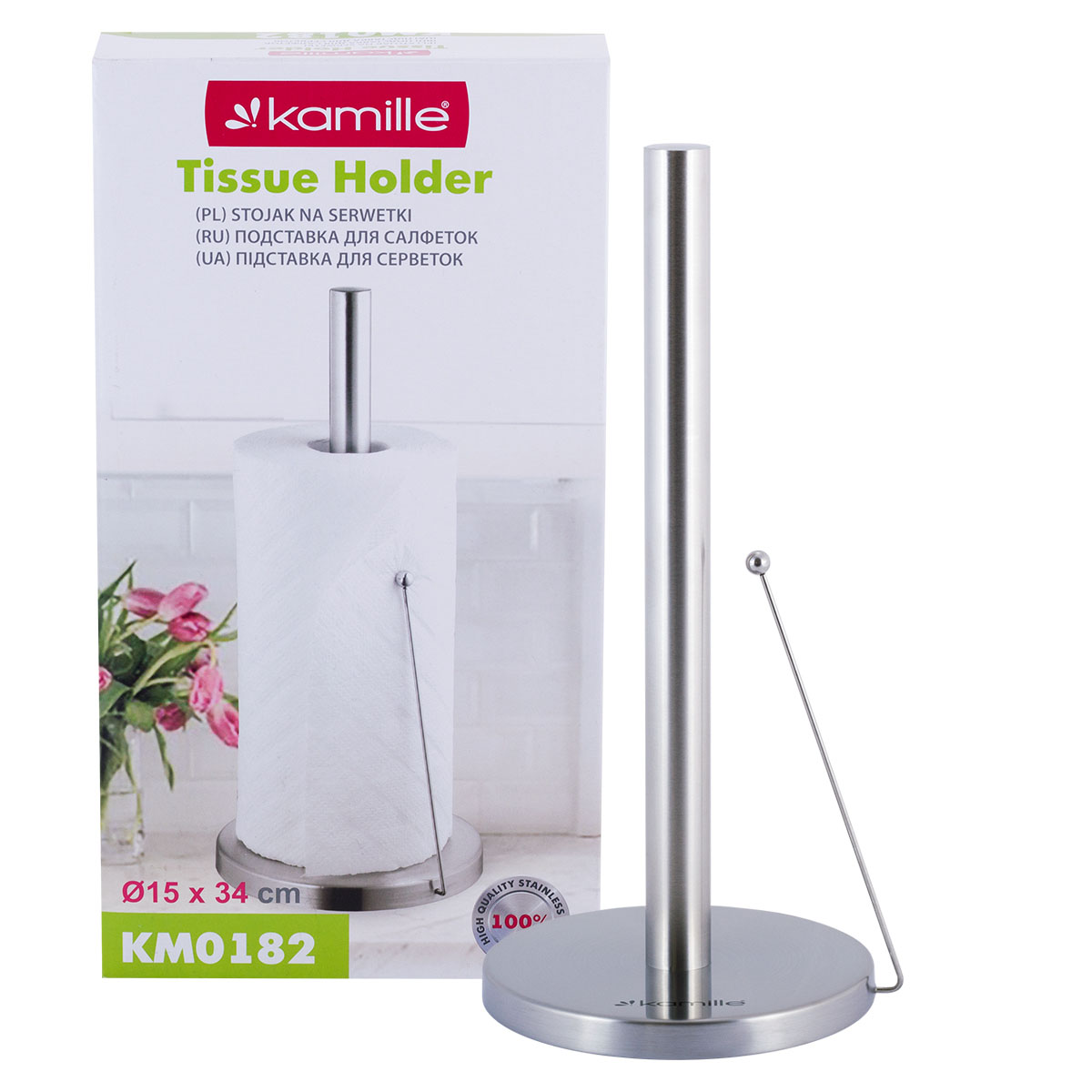 Держатель для бумажных полотенец нерж. Kamille 0182, из хромир.стали 15*33см с зажимом