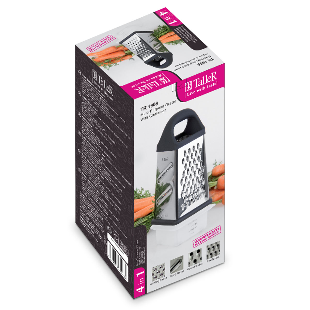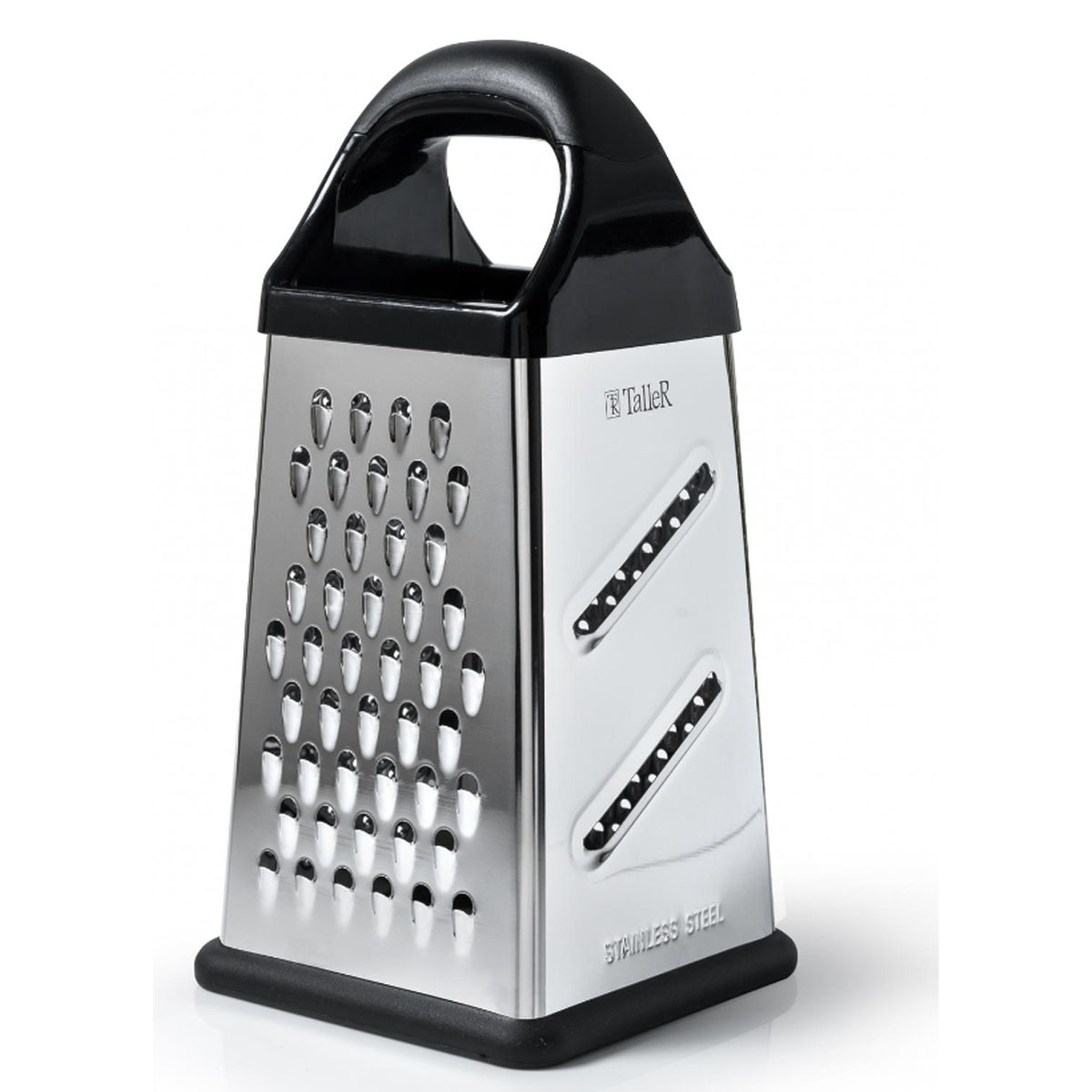 Терка нерж. TALLER TR-21908, 20,3 см, 4 лезвия, с контейнером, черный