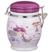 Емкость для сыпучих продуктов керам. Agness "Лавандовая весна" 358-1103, 750мл., Н150мм., крышка на защелке, с декором, бело-сиреневый