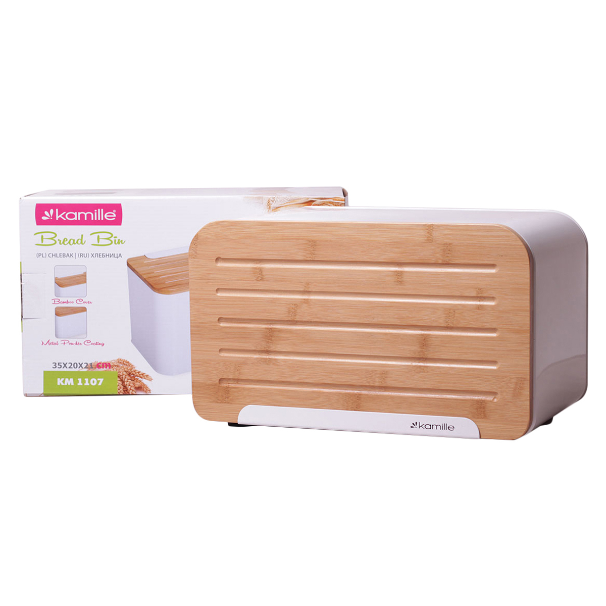 Хлебница нерж. Kamille 1107, 35*20*21,5см + бамбук, белая
