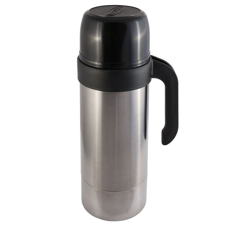Корпус изготовлен из прочной нержавеющей стали AISI 304, устойчивой к коррозии и механическим повреждениям. Эргономичная Г-образная ручка из полипропилена и крышка-чашка делают использование термоса максимально удобным в дороге, на работе или в путешествии. Компактный диаметр 116 мм и высота с крышкой 244,5 мм позволяют легко разместить термос в рюкзаке.