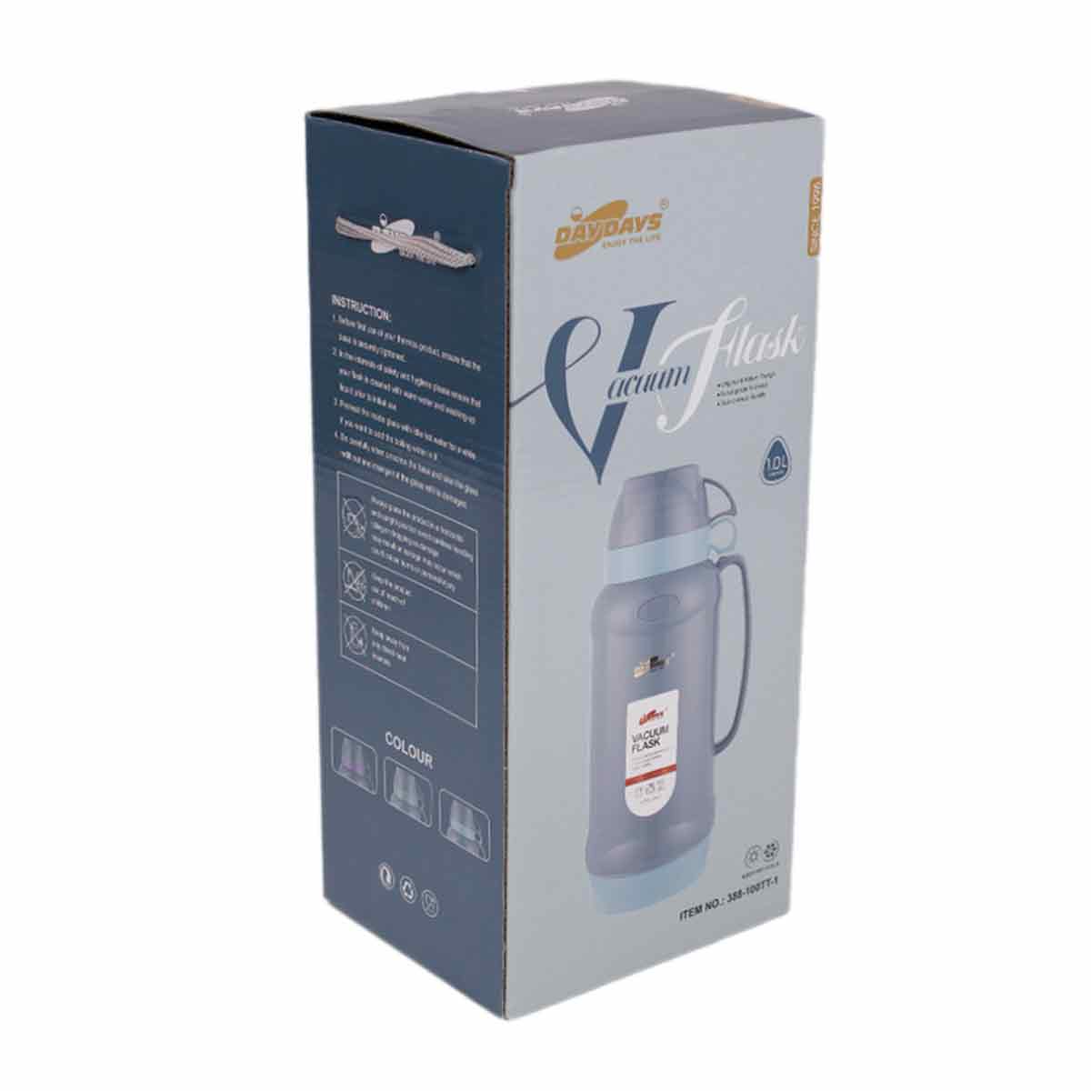 Термос 1,0л HTTS001 стекл., пластм., нерж.сталь, микс цв.