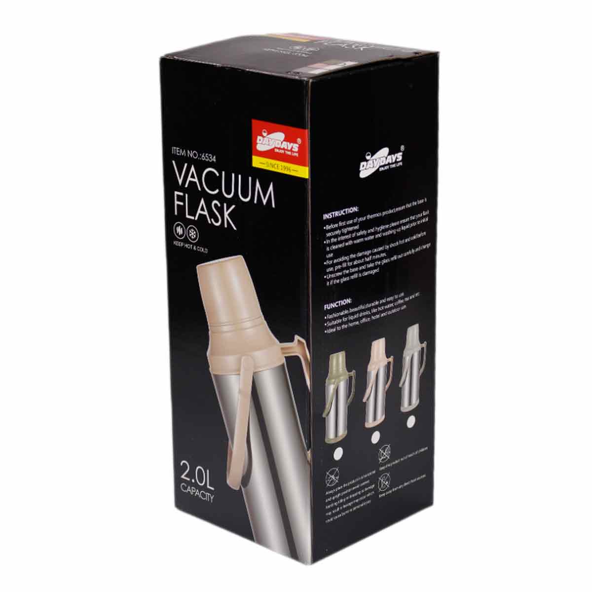 Термос 2,0л HTTS4 стекл., пластм., нерж.сталь, микс цв.