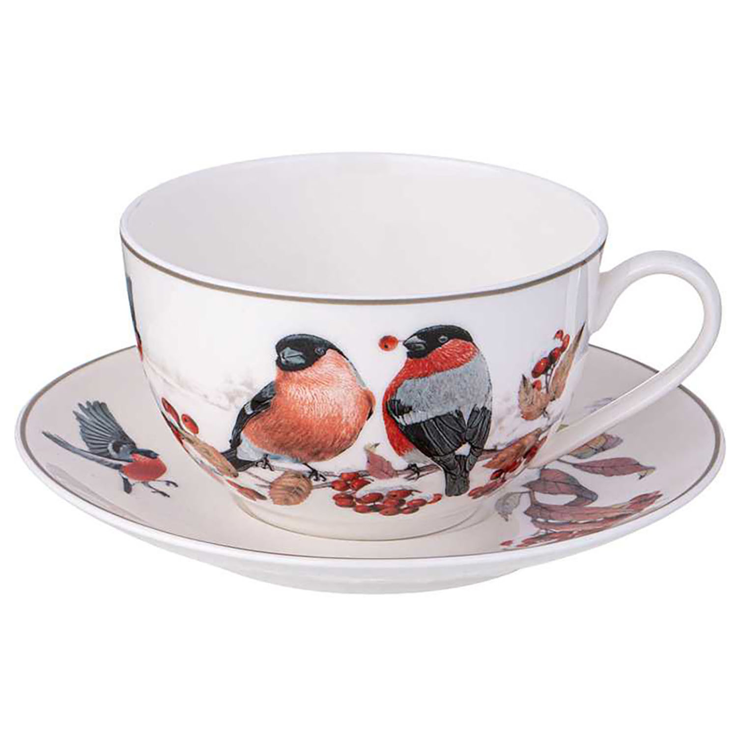 Пара чайная 10338094 Доляна «Волшебное дерево» НГ (чашка 210 мл, блюдце d=15см, фарфор,белая)