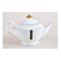 Чайник заварочный фарф. КОРАЛЛ "Снежная королева" LQ/S405316-А, 1100мл., на ножке, круглая, золотая кайма, белый