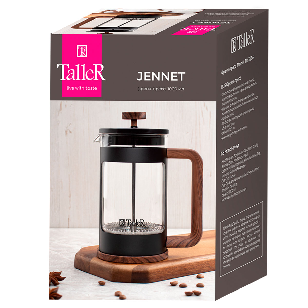 Закажите френч-пресс TalleR TR-32341 "Дженнет» прямо сейчас и ощутите настоящий вкус свежезаваренного кофе или чая! Доставка по всей России.
