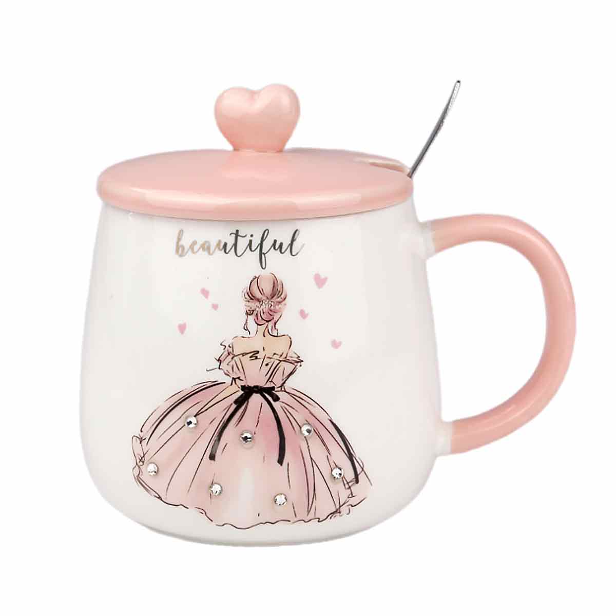 Кружка 380мл подарочная керамика HTY6, с ложкой и крышкой