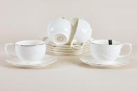 Набор чайный фарфор Коралл "Снежная королева" CS508610-A GIFT, 12 предметов, чашка 240мл., блюдце 140мм., круглая форма, золотая кайма, белый