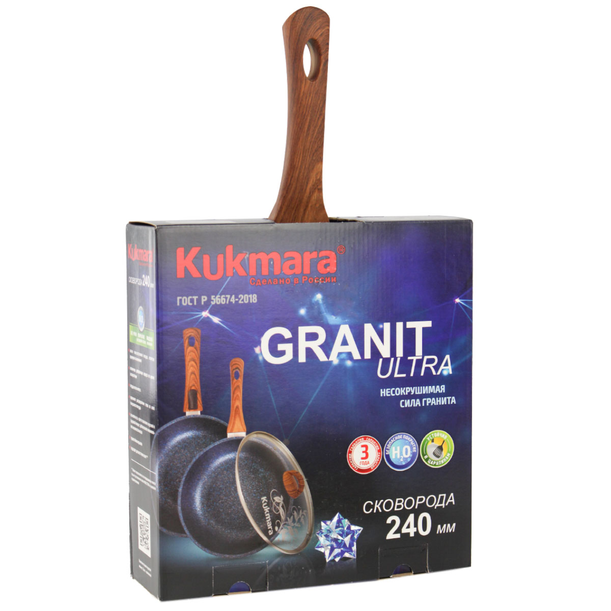 Сковорода Kukmara СГБГ241А из серии Granit Ultra в стильном цвете black-gold — это надежный помощник для повседневной готовки. Литой алюминиевый корпус с толщиной дна 0,6 см обеспечивает быстрый и равномерный нагрев, а антипригарное покрытие "Ultra granit", усиленное сверхтвердыми минералами нового поколения, позволяет готовить без лишнего масла и облегчает уход.