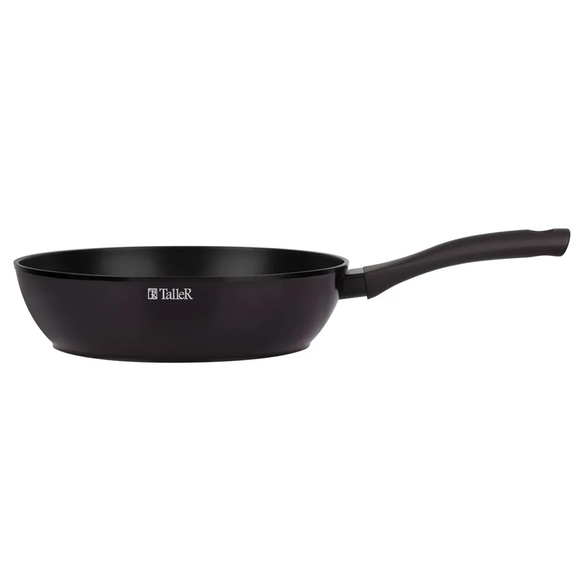 Сковорода TalleR подходит для всех видов плит, включая индукционные. Утолщённое дно (3,3 мм) обеспечивает равномерный прогрев без перегрева, а высокая стенка (6,8 см) делает модель удобной для тушения и приготовления блюд с соусами.