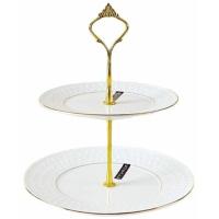 Ваза для фруктов фарфор Коралл "Снежная королева" CMB0134-A, 2 яруса, диаметр 165*210 мм, круглая, золотая кайма, белый