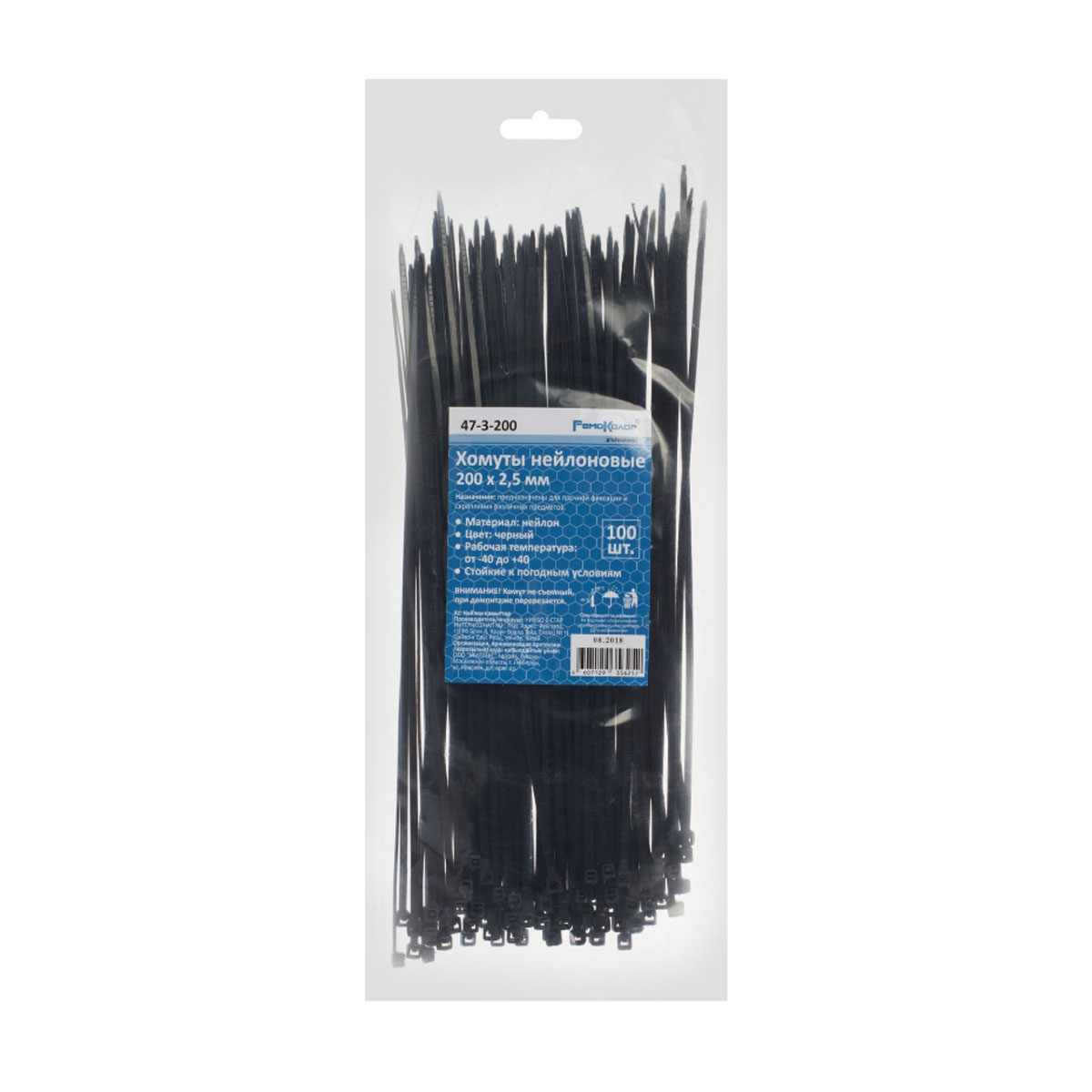 Хомут нейлон. 200*2,5мм 47-3-200 черные (100 шт.) и другие строительные и отделочные материалы, а также инструмент для ремонта и отделки вы можете купить на сайте vdd36.ru с доставкой или самовывозом из магазина «Всё для дома».