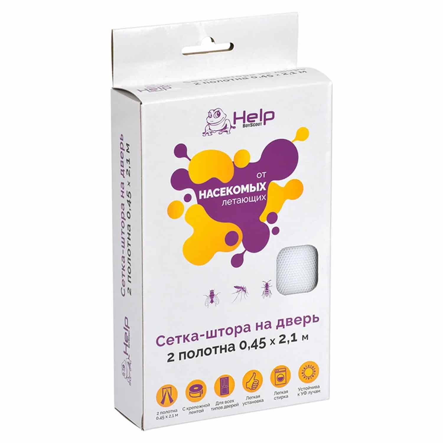 Сетка-штора на дверь 80003 ПРОТИВОМОСКИТНАЯ с крепежной лентой 45*210 см 2шт. в уп. HELP 20 и еще большой ассортимент других товаров для туризма и отдыха на природе, товаров для дачи можно купить по выгодным ценам в онлайн-магазине vdd36.ru с возможностью бесплатного самовывоза в любом розничном магазине сети «Всё для дома».